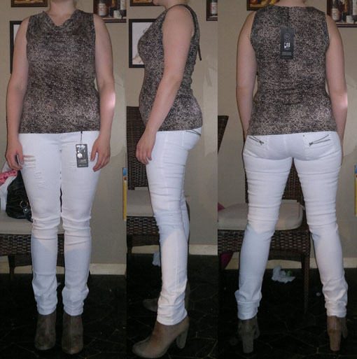 Kaiken kaikkiaan toi asu on kuitenkin mulle ihan vieras. En tiedä osaisinko olla noissa vaatteissa, eikä toi toppi mun mielestä näytä mulla hyvältä, varsinkaan noiden housujen kanssa. Topinkin aion kuitenkin pitää, koska toisten housujen ja ehkä neuleen kanssa on varmaan ihan kiva.